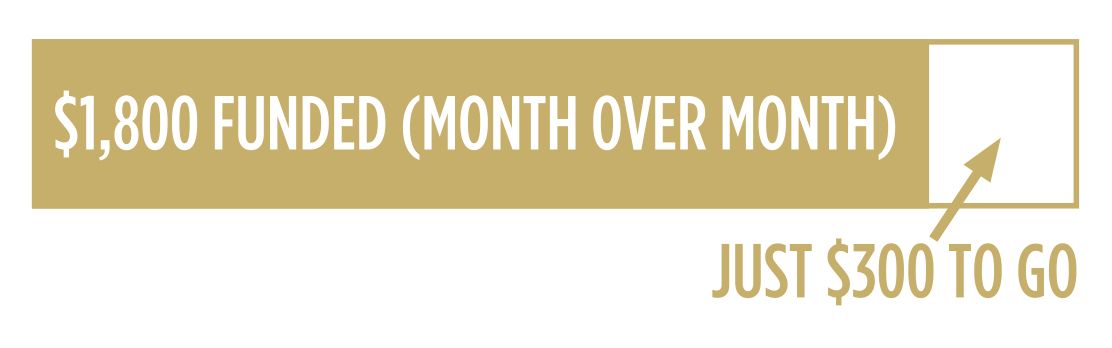 Our ongoing funding sits at about $1,800 CAD a month. To be fully funded we would be closer to $2,100 CAD a month, so we have about a $300 CAD a month shortfall (about $220 USD).